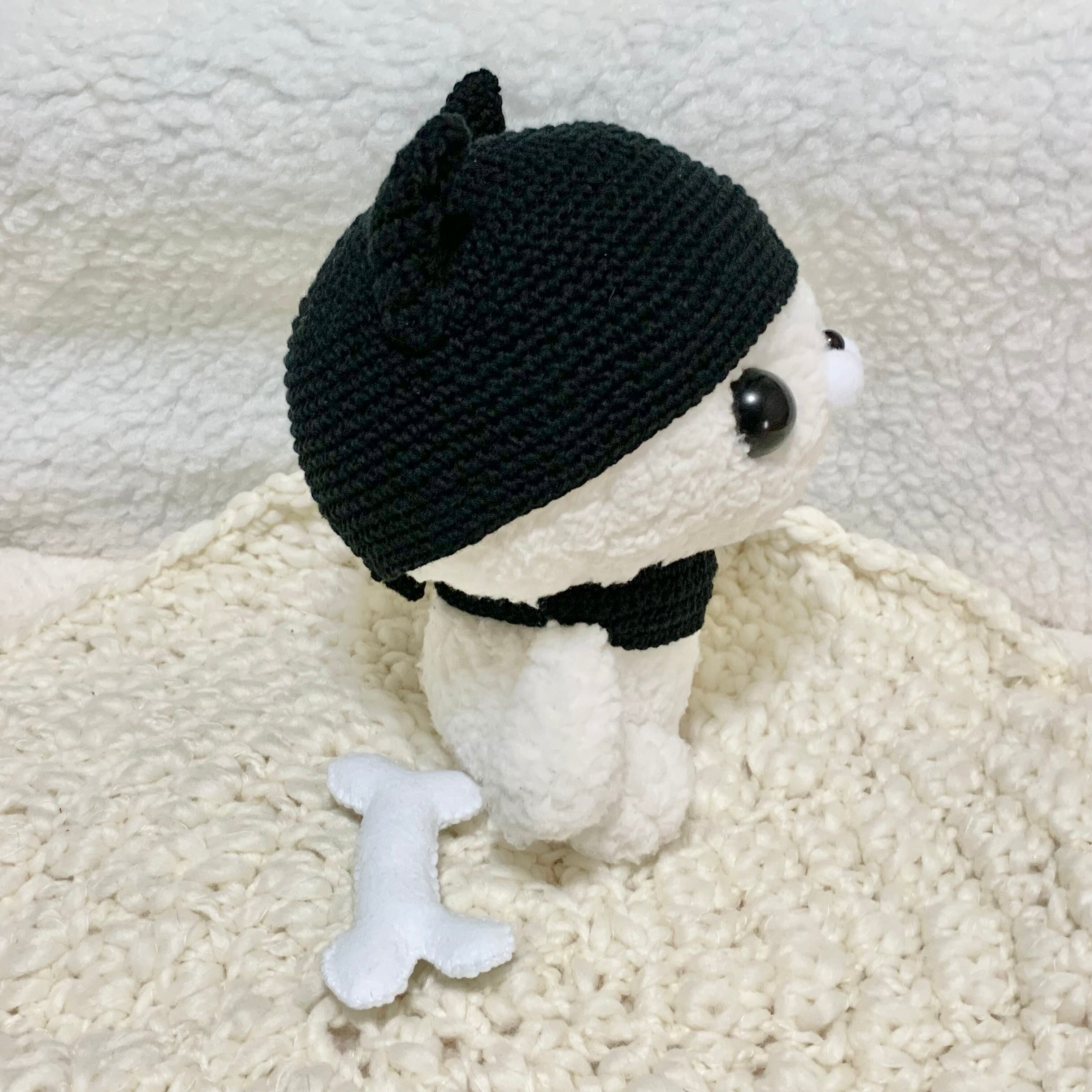 黒い帽子と胸元のベルト、骨、